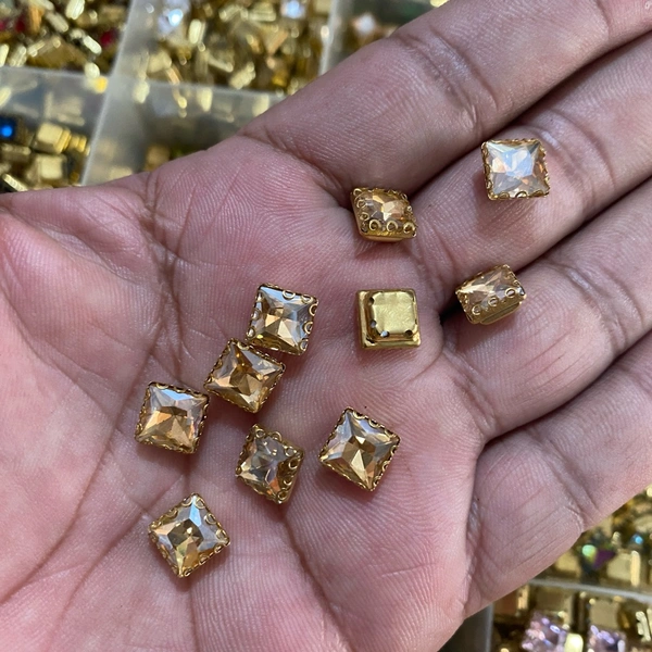 8MM Clip Stone Gold Color Square Shape - Pack Of 10 Pieces