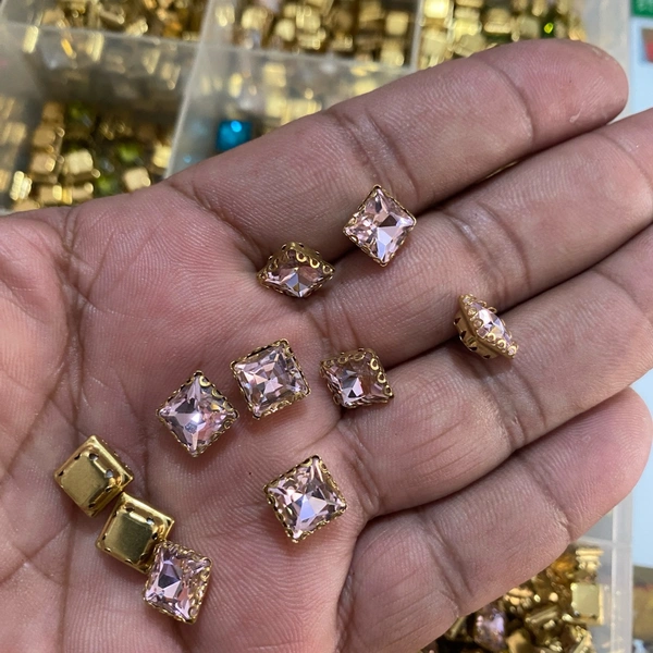 8MM Clip Stone Pink Color Square Shape - Pack Of 10 Pieces