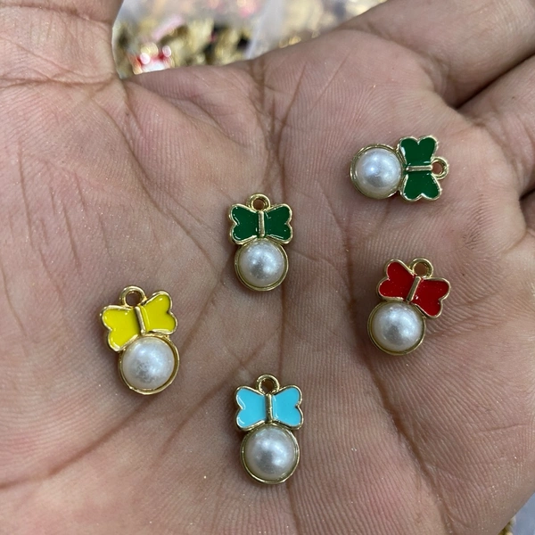 Butterfly With Pearl Bead Charms (Random Colors) - Pack of 6pcs