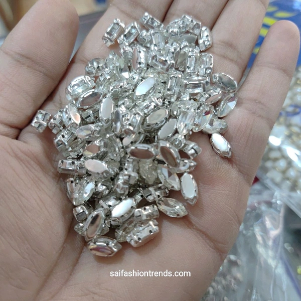 Clip Stones -Silver Base White Stone (10 Piece) Eye Shape