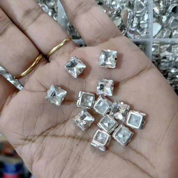 Clip Stones-Silver White Square (10 Piece)