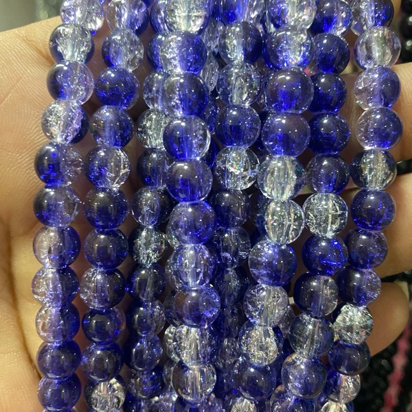 Crackle Beads Blue With White Color 8mm - Pack of 1 String