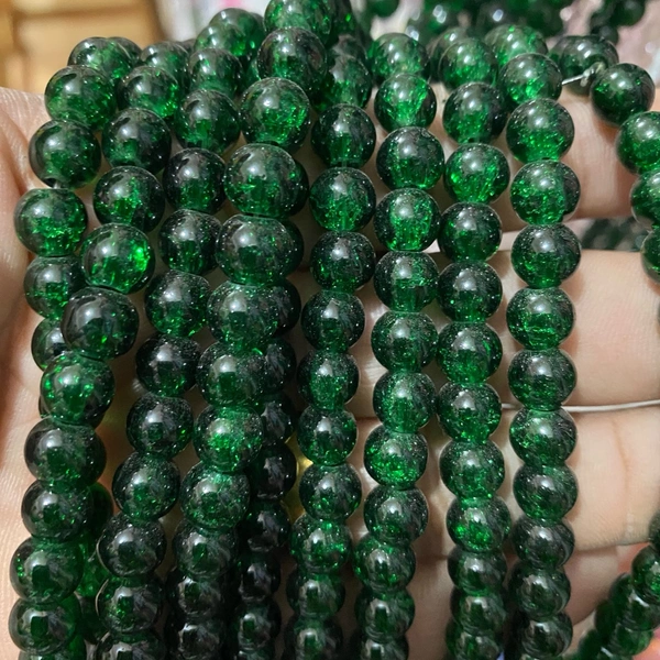 Crackle Beads Green Color 8mm - Pack of 1 String