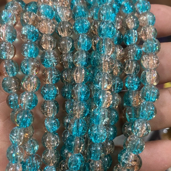 Crackle Beads Sky Blue And Brown Color 8mm - Pack of 1 String