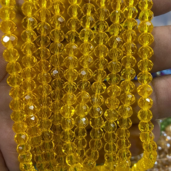 Crystal Beads 6mm Rondelle Yellow Color Glass - Pack of 1 Strand