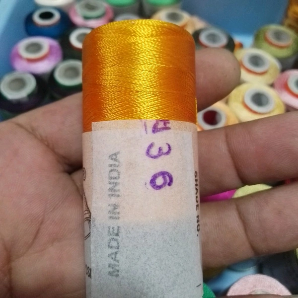Premium quality Double Bell silk thread, approx. 500 meters length. Ideal for embroidery, Aari work, and fine stitching. Smooth, durable, and vibrant. (150/2 Denier)