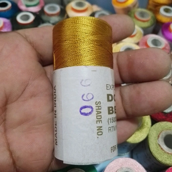 Premium quality Double Bell silk thread, approx. 500 meters length. Ideal for embroidery, Aari work, and fine stitching. Smooth, durable, and vibrant. (150/2 Denier)