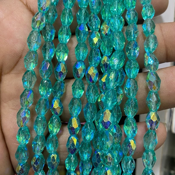 Drop shape Crystal Beads Cyan With Gold Shade Color (8mmx6mm) 1line