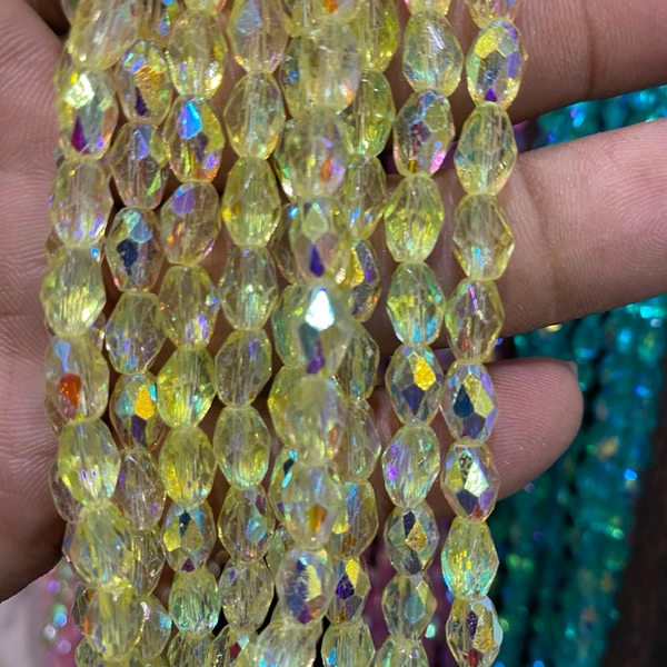 Drop shape Crystal Beads Yellow With Gold Shade Color (8mmx6mm) 1line