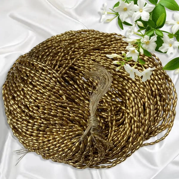 Eye Shape Bead Size 3mm, Finish: Dull Gold, Quality: A1 – Superior finish and durability, Quantity: 5 bunches (each with 12 lines/strands)