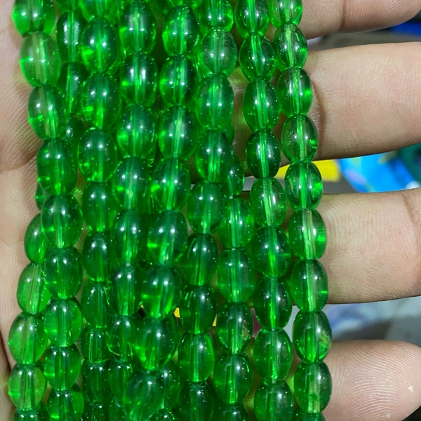 Oval Shape Beads 8x6mm Green Color - Pack Of 1 String