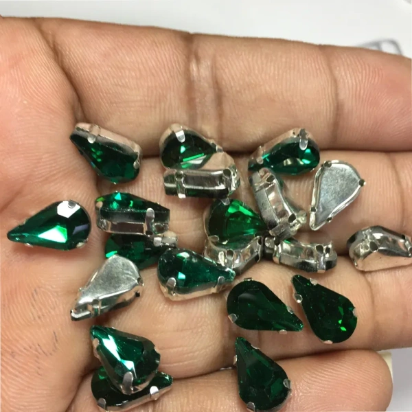 Size: 12x8mm, Shape: Teardrop, Base: Silver-plated for a sleek, polished finish, Attachment: Sewing claw for secure and easy fastening